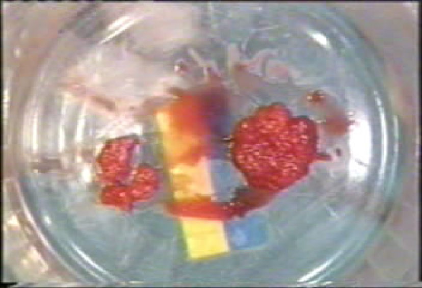 2、圆形开窗 ,观察开窗部位颜色改变 ,当透蓝时可确定粘膜;