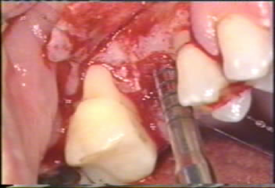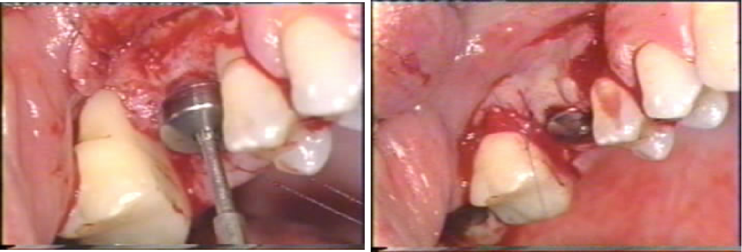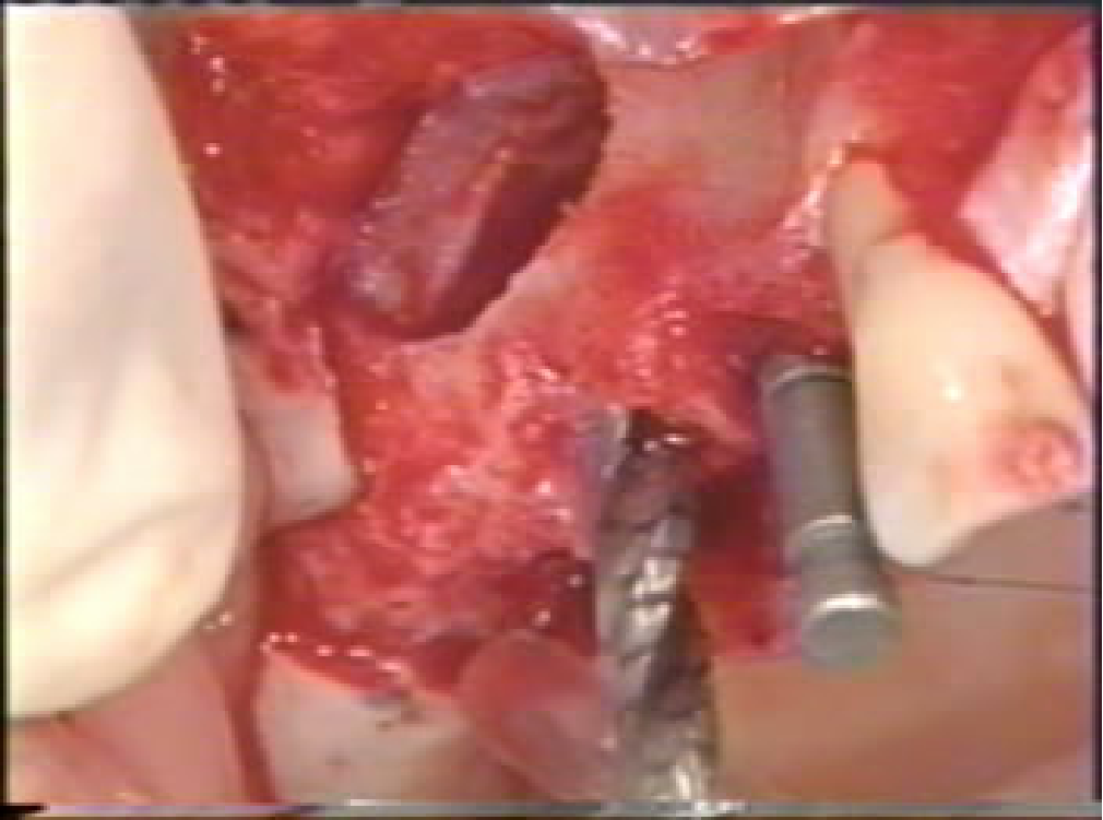 ⑥直视下在牙槽嵴顶逐级扩孔,植入种植体;
