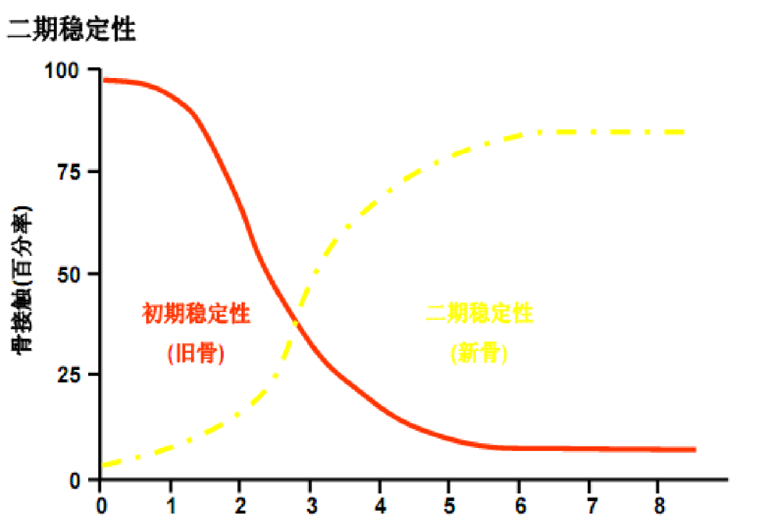 二期稳定性:是新骨形成是获得的,即骨结合;