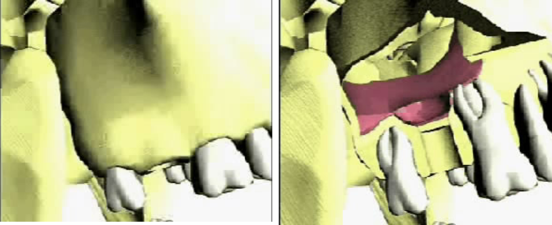 4、使用剥离子的力量方法,分离范围;上颌窦粘膜厚度约0.3-0.8mm ,长期吸烟者更薄;