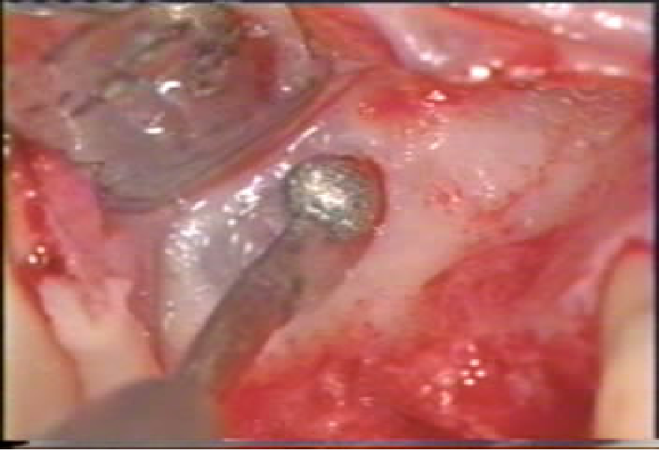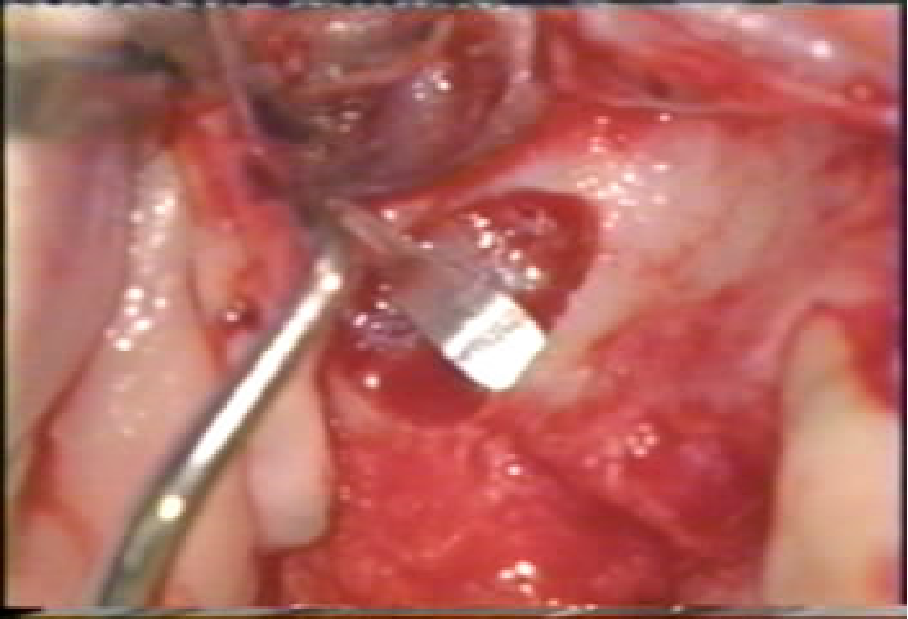 1、球钻开窗 轻柔操作 骨壁厚度约1.5mm;