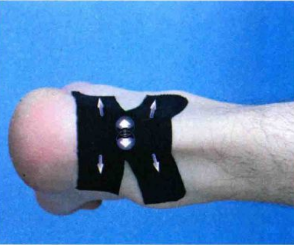 第二步:肌肉贴扎及韧带(肌腱)贴扎:同扎方法一