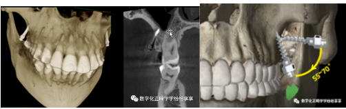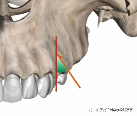 成人植入位置可选择在6上方,也有延伸至7上方。青少年则考虑在5、6之间,植入前临床医生注意用手触摸了解其口内实际情况走形。推荐支抗钉长度:12mm,助攻型。风险注意:并非所有患者都适合颧牙槽嵴种植钉的植入,颧牙槽嵴解剖形态的各系差异非常明显。此处植入容易穿破上颌窦底,植入角度需注意;骨质较为坚硬,支抗钉易折断。一般植入角度向牙合面旋转60-70°