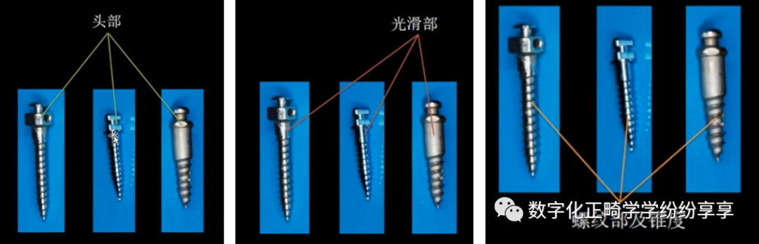 支抗钉的结构:直径和长度、头部、光滑部、螺纹部及锥度