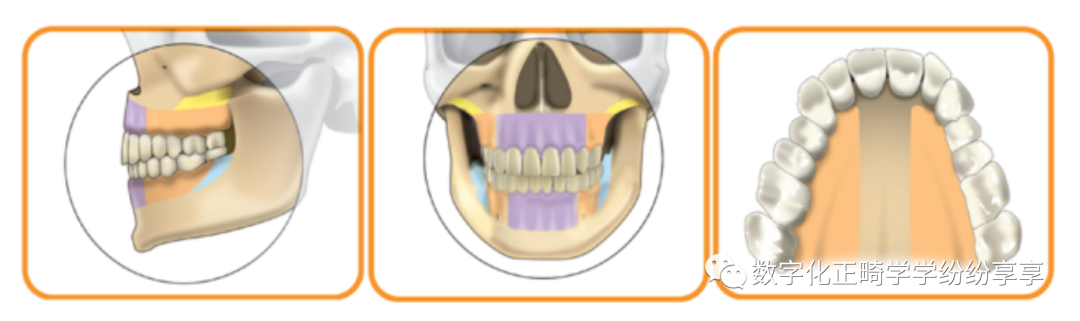 根据骨类型,骨密度,牙根间距、粘膜厚度的不同,上下颌可以划分为不同区域,分别用紫(6mm)、橙(8mm)、蓝(10mm)、黄(12mm)四种颜色标记,这些区域就是传统的可植入部位,每个部位所选择的支抗钉也相应会有所差异。
