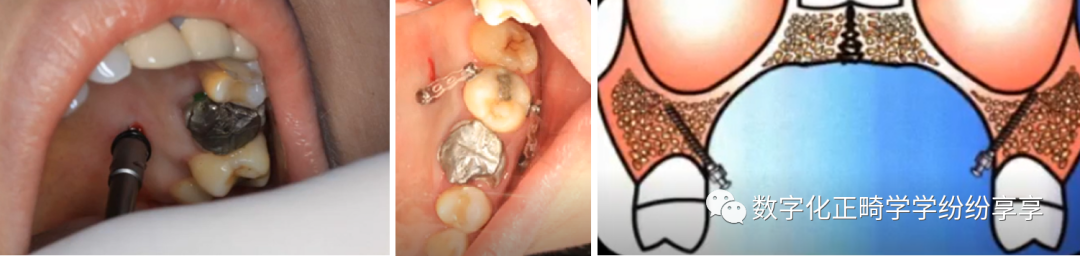上下颌颊侧尖牙与第一前磨牙之间(3、4之间):主要用于磨牙远移,防止前牙过度唇倾,颊向压低牙列,调整牙根直立,颌间牵引等情况;从膜龈联合处或其牙合方植入,大约距离牙槽嵴顶5-6mm的位置;垂直骨面,根间距中间,推荐支抗钉长度8mm;