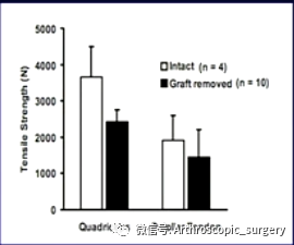 其次,有研究👇表明:以10mm股四头肌腱取腱后,其生物力学性能仍大于完好的髌韧带。