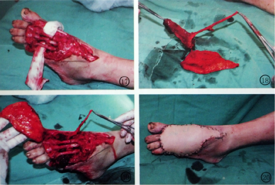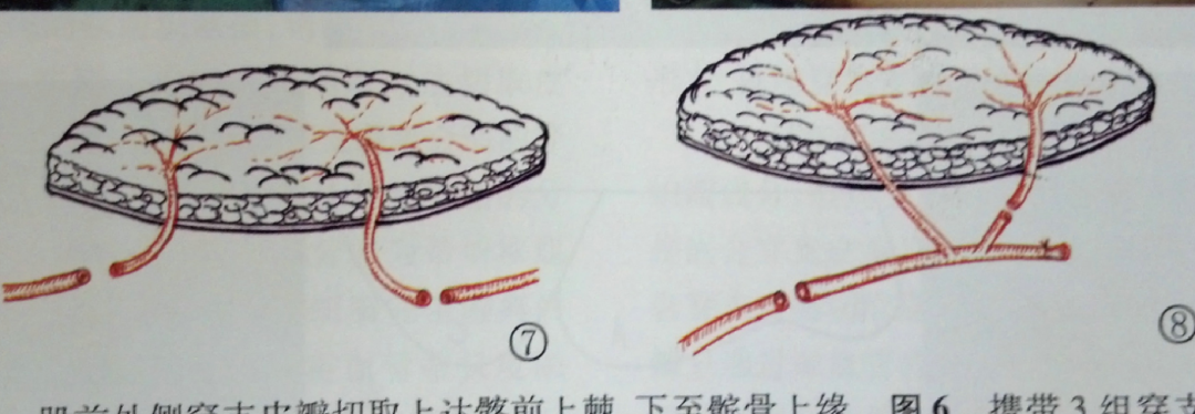 3、术中万一发现穿支来源于不同源血管时,则只能改为穿支皮瓣组织移植,吻合两组或以上血管以重建皮瓣血运。