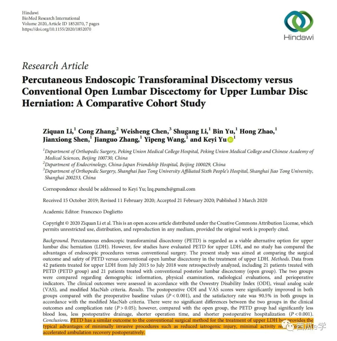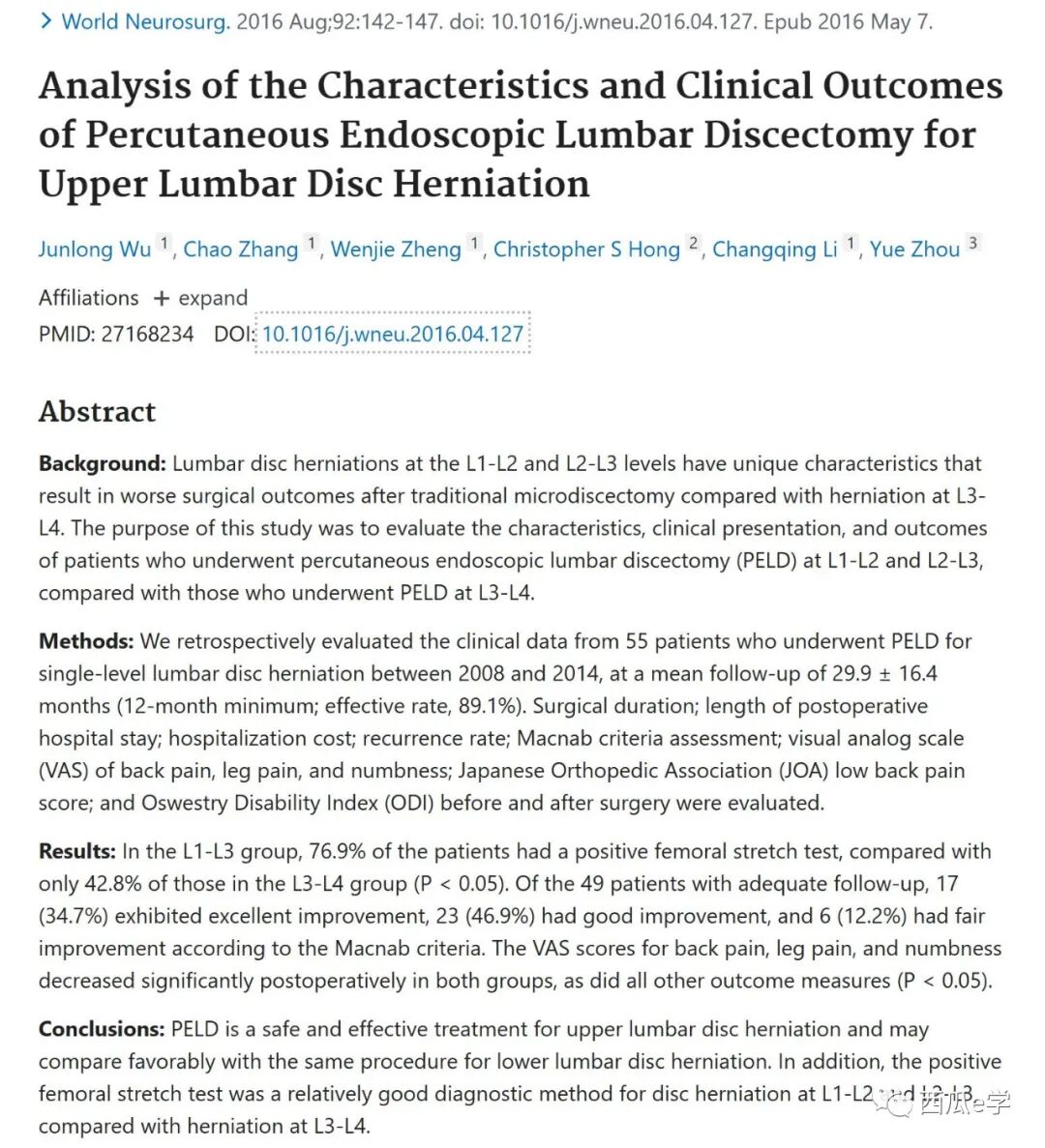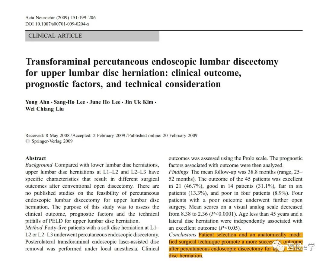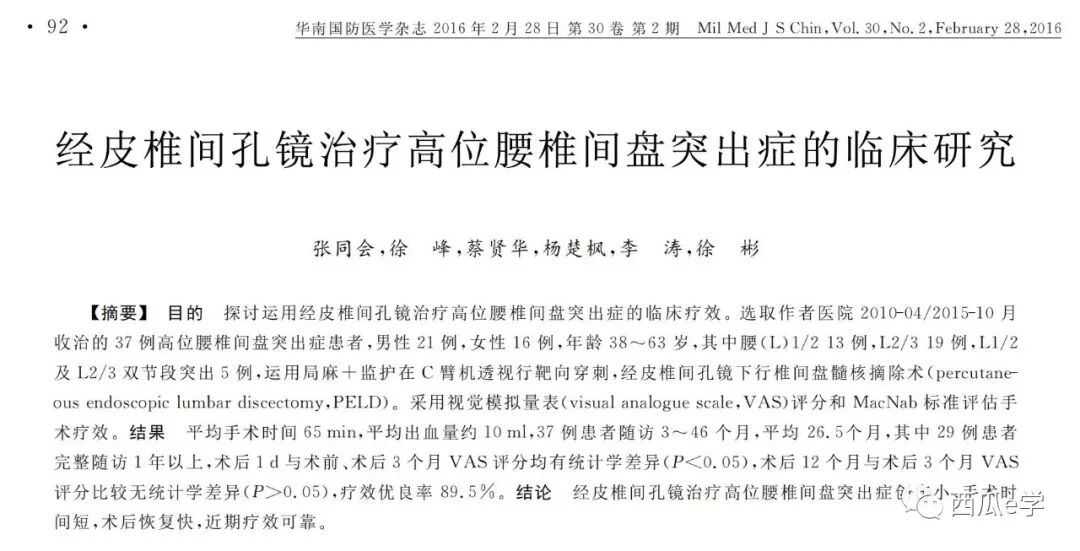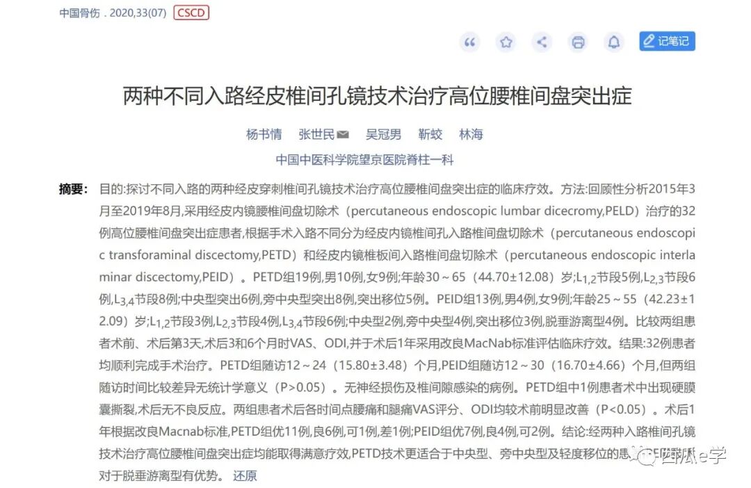 研究报道,椎间孔镜治疗单纯ULDH临床证实是安全且有效的。
