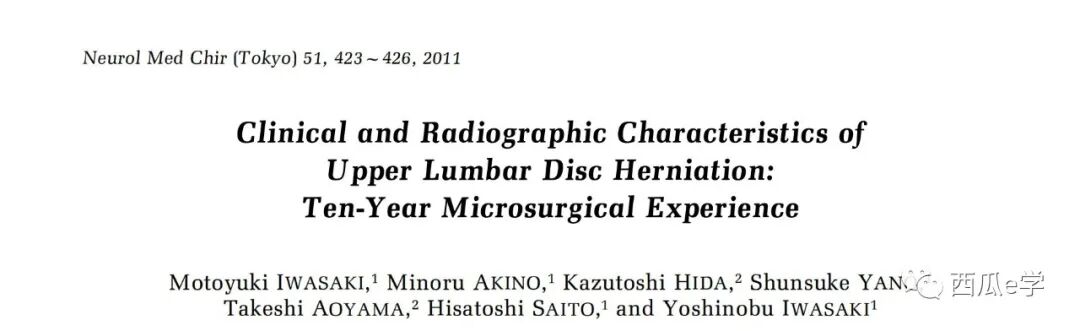 高位腰椎间盘突出症(upper lumbar disc herniation,ULDH)所包括的节段目前并无明确定义,一些作者认为其指L1/2和L2/3椎间盘突出,也有作者将其扩展到L3/4。