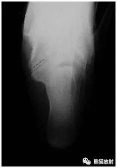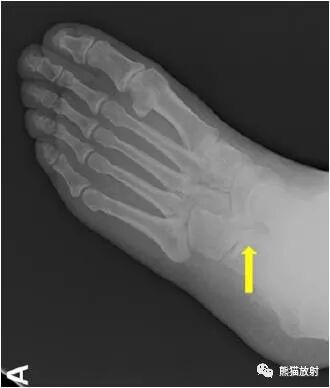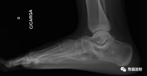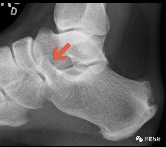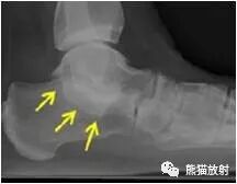 跟舟联合在侧位X线片上呈现食蚁兽鼻征,拍摄45°内斜位X片观察跟舟联合。