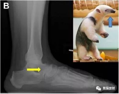 2、食蚁兽的鼻子:跟骨的前上部管状伸长,接近舟骨或与其重叠。