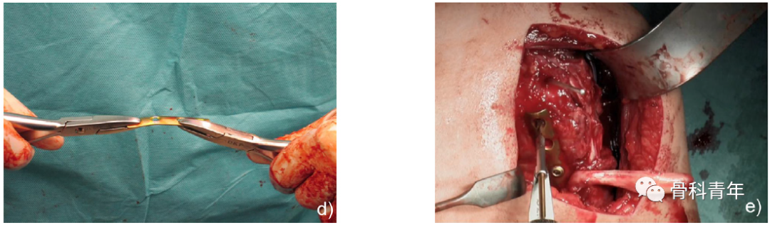 典型病例:a/b,术前X线及CT;e/f,术后4月复查。