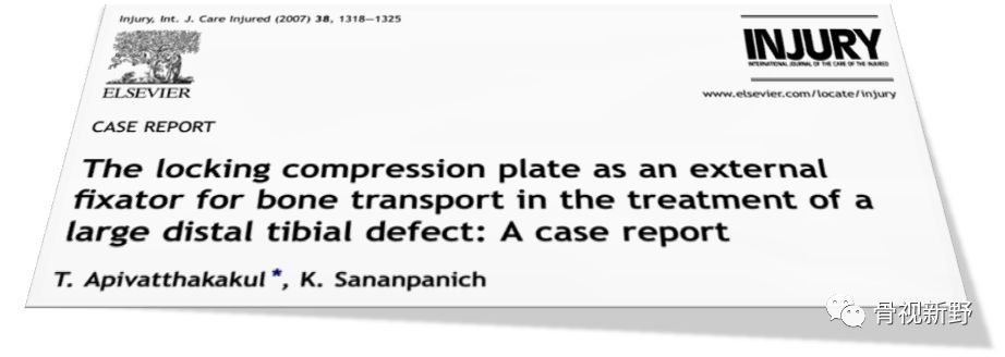 2007年,泰国医生T.Apivatthakakul等人年首次报道了将锁定加压钢板(locking compression plate,LCP)用于胫骨开放性骨折并骨缺损的外固定治疗1例,取得了较好的固定效果。