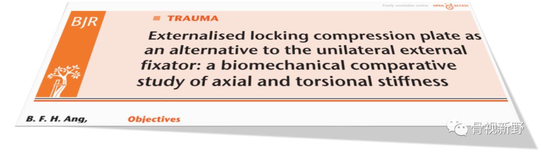 锁定钢板具有角稳定特性,这点与外固定架有点相似,因此,有学者创新性地将锁定钢板用于外固定,用于开放性骨折或感染性骨不连、骨缺损等的临时固定或终极固定。现图文摘要综述如下: