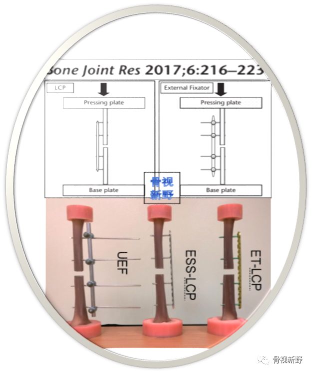 B. F. H. Ang 等人(2017)对外固定使用的不锈钢LCP(ESS-LCP)、钛合金LCP(ET-LCP)与传统单边外固定架(UEF)固定装置进行了轴向及抗扭转强度的对比研究。