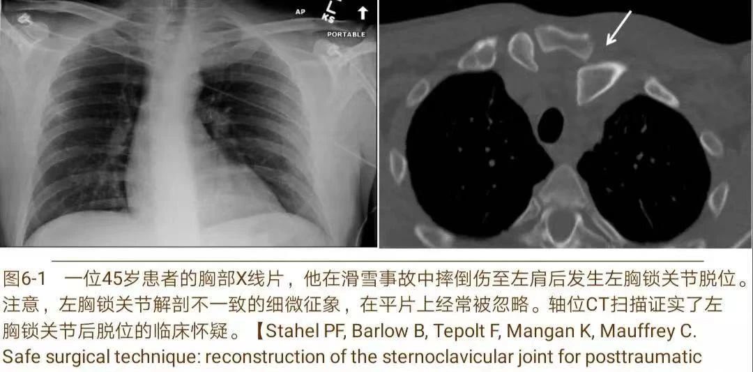 胸锁关节脱位:两侧胸锁关节不对称,可有异常活动,锁骨内端可突出或空虚。