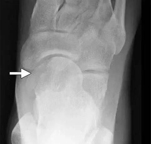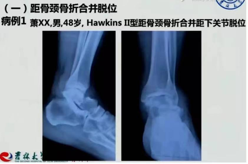 距骨骨折脱位:多由高处跌下所致,压痛点在距骨,X线片可协助鉴别。