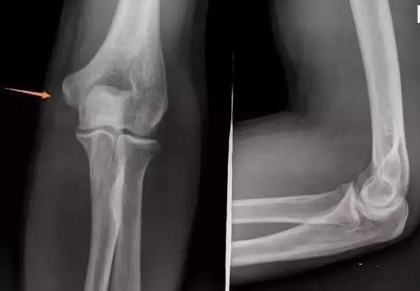 肱骨小头骨折:单纯的肱骨小头骨折多见于成人,合并部分外髁的肱骨小头骨折以儿童多见。亦有肘外侧及肘部的肿胀、疼痛,功能障碍;肘关节伸屈活动受限,尤其屈曲90-100°,常发生肘部疼痛加重并有阻力感觉;X线表现常有特征性,需仔细观察正、侧位X线片。