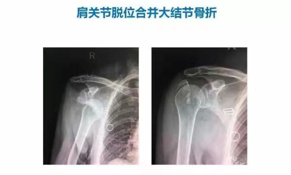 肩峰骨折:均为肩部肿痛,但压痛点位于肩峰部,被动外展时可有一定的活动度;X线片可见肩峰骨折。