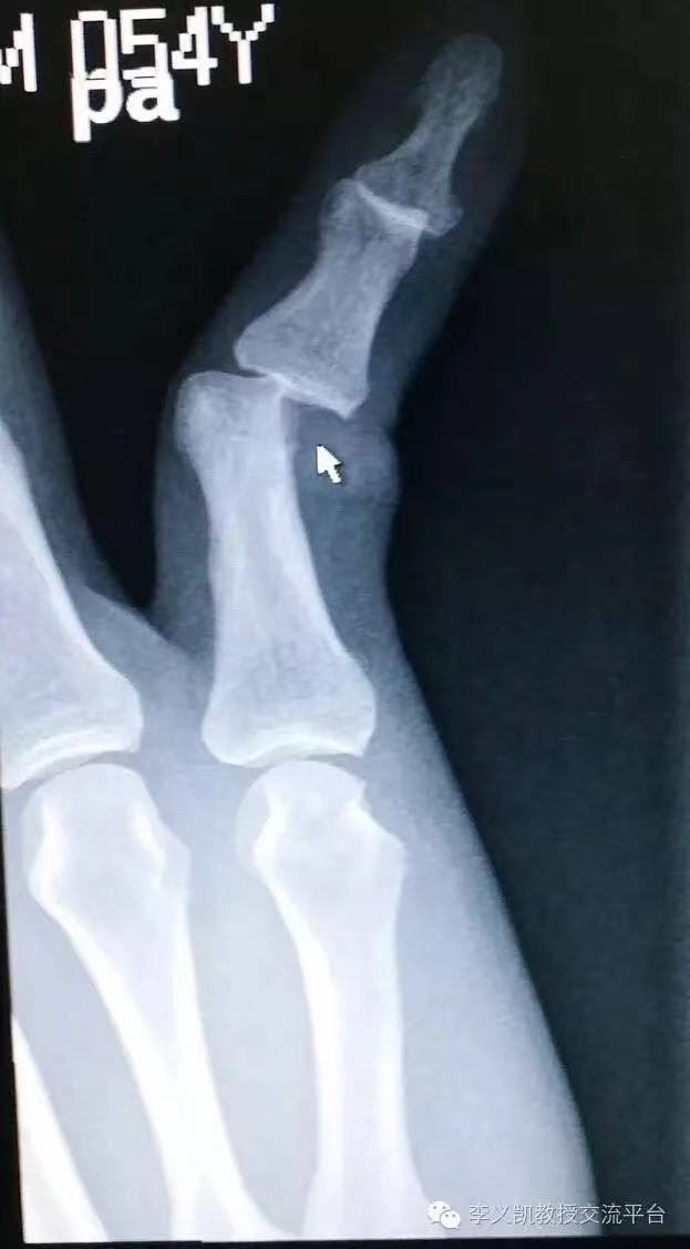 指间关节脱位:近关节部肿痛、活动障碍;指间关节弹性固定在伸直位;X线可确诊,常伴有撕脱骨折。