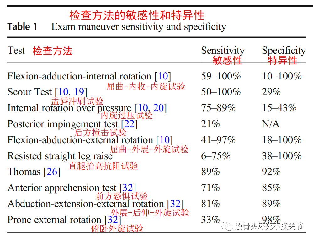 这个激惹性方法用来评估FAIS和盂唇损伤(表1)。