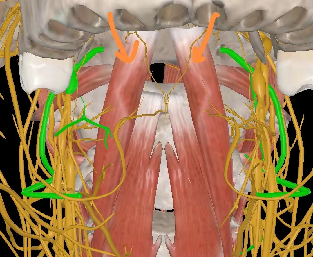 绿色为舌下,舌咽神经和颈神经节箭头所指头长肌