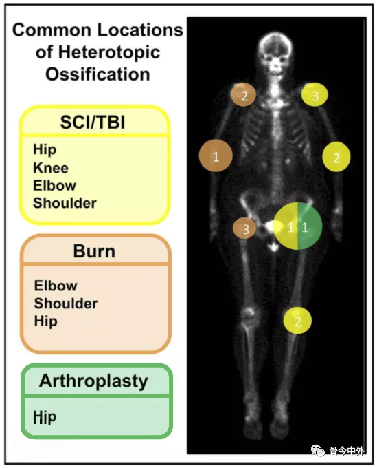 由于异位骨化的高发病率以及其发病机制的复杂性,其预防及治疗一直受到人们的重视,且治疗的关键在于患者疼痛的缓解以及功能的改善。但目前对异位骨化发病机制的认识,最有效的预防方案,手术时机的选择,物理治疗的必要性以及基因靶向治疗的临床应用等问题尚不明确。