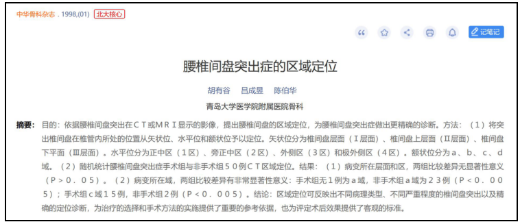 《腰椎间盘突出症诊疗指南》提示:区域定位可反映不同病理类型、不同严重程度的椎间盘突出的精确定位诊断,将会为治疗方法的选择和手术的实施提供参考依据。