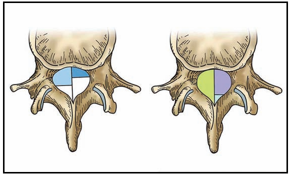 将骨性椎管矢状径分为四等份,从前至后一至四份分别命名为 a 域、b 域、c 域、d 域。