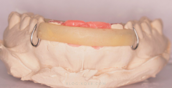 它由双曲唇弓、一对磨牙箭头卡环及塑料基托组成,将唇弓焊接在磨牙箭头卡环的颊侧,有利于间隙的关闭和保持,常用于第一前磨牙拔除的病例。