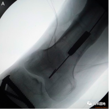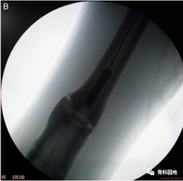 然后将不锈钢丝拉近端以钩住断裂的钉子。然后通过轻轻地将不锈钢线拉出来取回钉子(图B)。