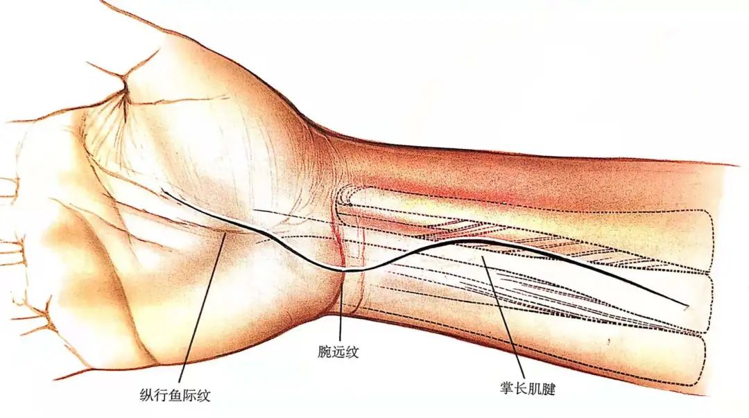- 可用于显露正中神经。将切口向近端延长至前臂前侧中部。