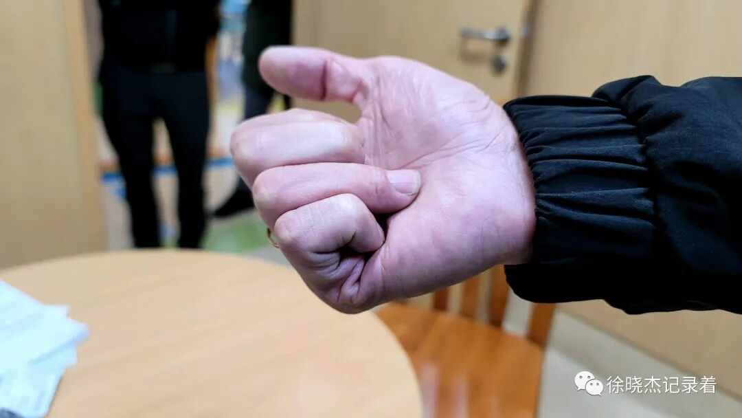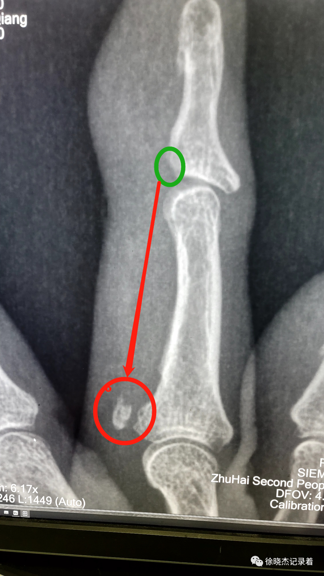 第16位患者是02:04过来就诊的,据他说那个人骗了他家人好几百万,欠了10年,中间失联了四五年,后面又找到了。他拿着欠条从北方跑到珠海过来要钱催债。结果反倒被对方打伤了。体格检查发现右环指肿胀,近指间关节以远压痛,远指间关节为甚,远指间关节屈曲不能。