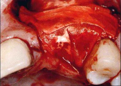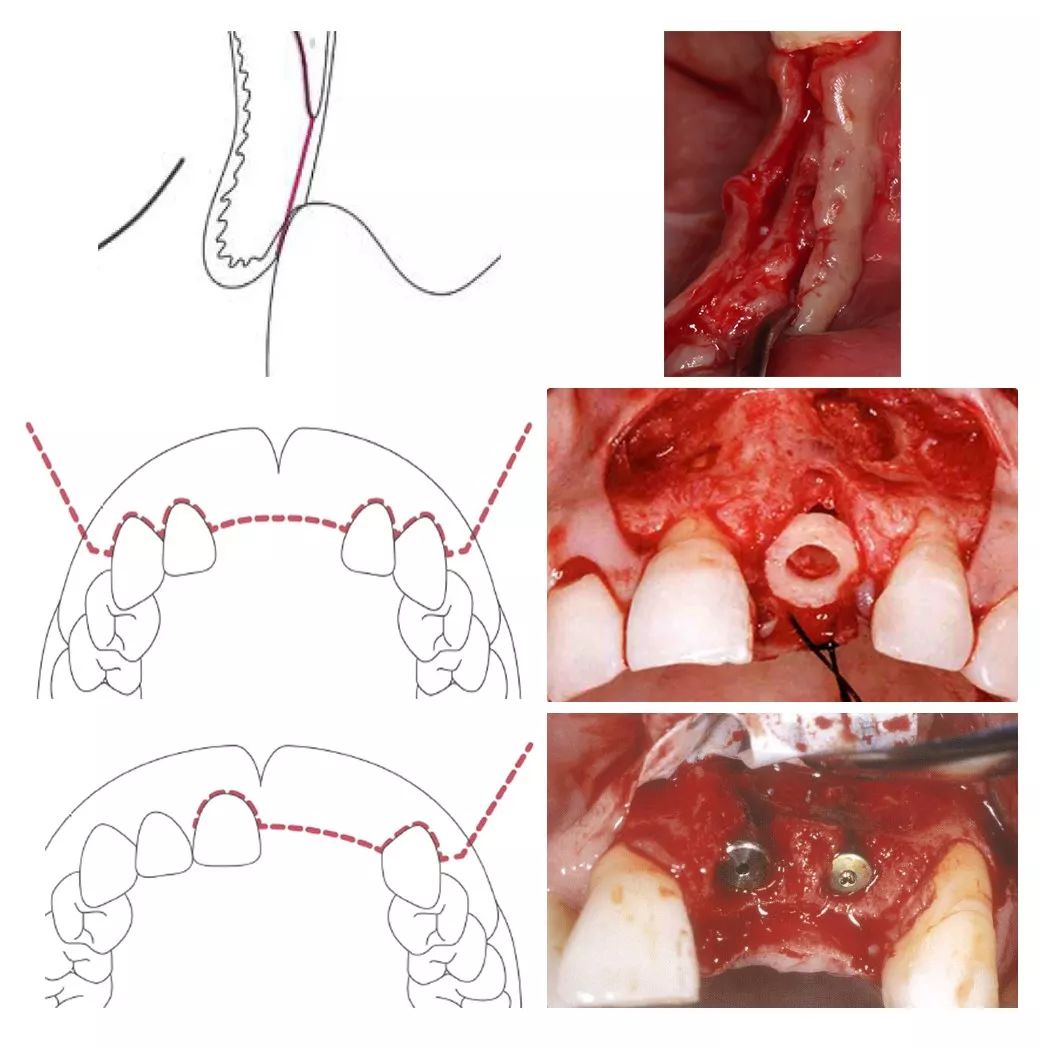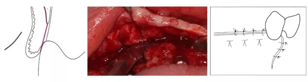 要求达到正确对位,紧密无张力的缝合。往往植骨量越大,术区的关闭就越困难。此时,往往需要进行瓣膜的减张,其原理在于切断活动度较小的骨膜,将骨膜上方活动度大的结缔组织冠向复位。