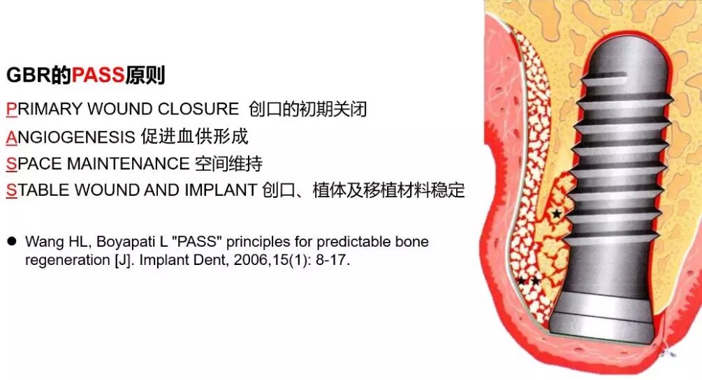 从术前的病例选择,方案设计,到术中的切口,翻瓣,骨粉骨膜的应用,获得稳定的成骨空间,伤口的无张力缝合以及术后的患者护理,每一步都可能决定一次GBR的成败。