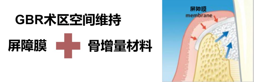GBR中,屏障膜隔绝了成纤维细胞对其下方的骨缺损区成骨活动的干扰,从而促进成骨,而骨缺损区可覆盖不同种类的骨移植材料。