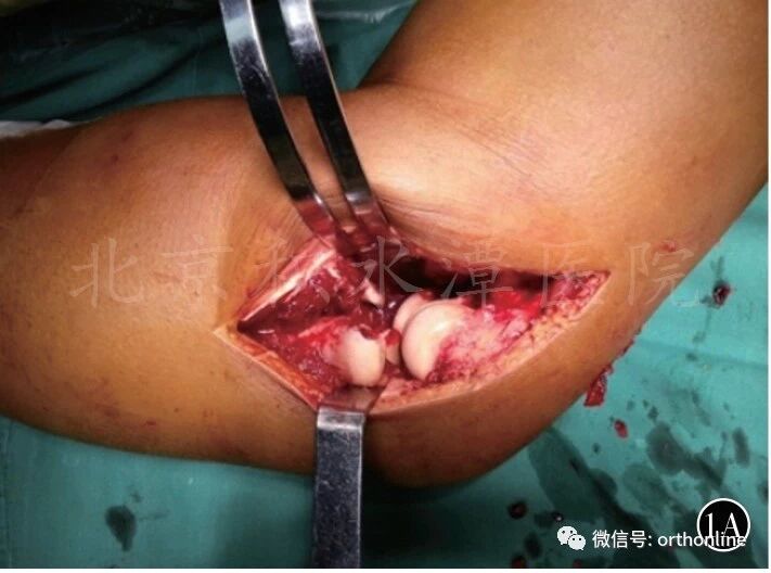 1A桡骨头内固定前可很好地显露冠状突骨折块
