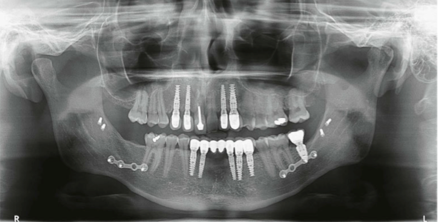 新生血管生成及灌流需要2~3周,此时间受移植骨块的大小及受区血供影响。新生血管较为脆弱,如果此时有任何的挫动,易损伤新生血管,影响骨块愈合甚至导致坏死。因此移植骨块必须有良好的固定和制动,尽量避免来自外界的干扰,如RPD等。