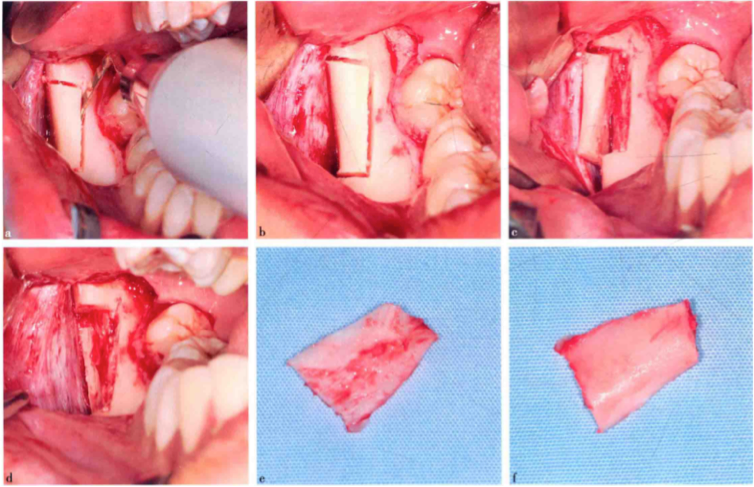 放置骨块前,先对受骨床和骨块进行外形预备,适当调整,使二者能较好的贴合,受区处理主要包括以下几方面: