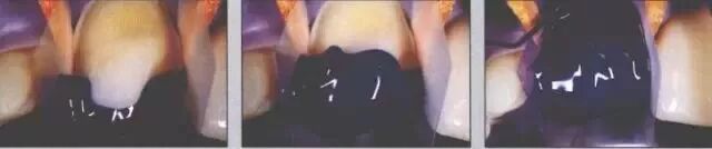 在牙齿表面涂薄薄的一层粘接剂,同样不要光照,从这一刻起,操作区要远离强光照射,以免树脂提前固化,取出遮光板下面的修复体,缓慢就位,这时会有多余的粘接树脂从边缘溢出,直至修复体完全被动就位。