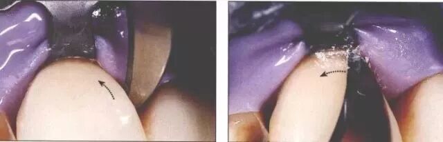 如果两个牙齿间的接触点压力比较大,此时不要着急调邻接点,这是粘接后的工作,不需要返工;