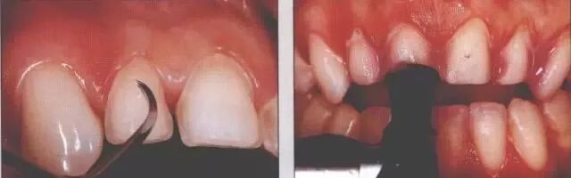 固化后使用12号刀片将多余的树脂轻轻去掉,避免对软组织造成损伤,然后使用旋转器械对修复体的边缘进行抛光。