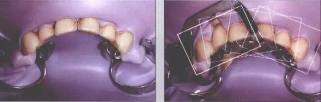 如果粘接的是多个贴面修复体,一定要一个一个粘接,每次都要重复上面的操作步骤,不要因为嫌麻烦而同时粘接多个修复体。