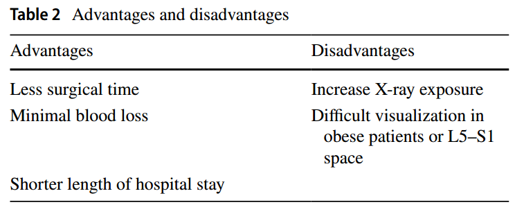 最后作者总结,PLD+PCP可作为老年腰椎间盘突出症伴I型Modic终板改变患者的可选治疗方法,对于因一般情况不佳难以耐受传统开放手术或不愿意接受开放手术的患者来说,这似乎是一个选择。此外,这是一种微创技术,可在清醒镇静下进行,并发症发生率极低,住院时间短。