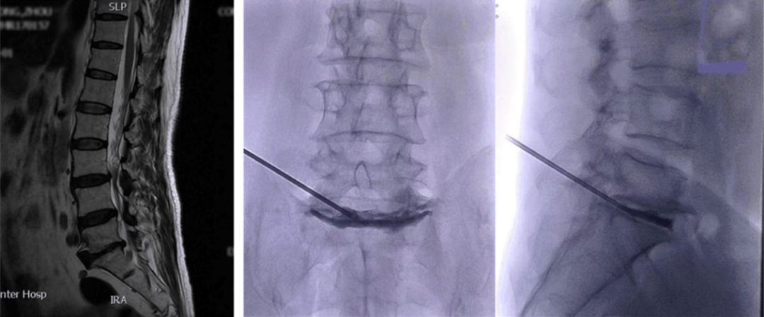 图: 国内西安市中心医院骨二科报道1例局麻下行经皮L5-S1椎间盘臭氧盘内减压术+PCD治疗顽固性腰痛,采用后外侧入路直接进入椎间盘,术后随访1个月,VAS和ODI评分均明显改善,未见明显并发症