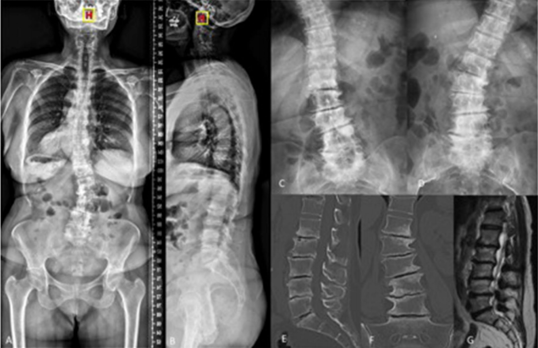 图: 术前影响资料可见退行性侧凸伴多节段椎间盘真空征