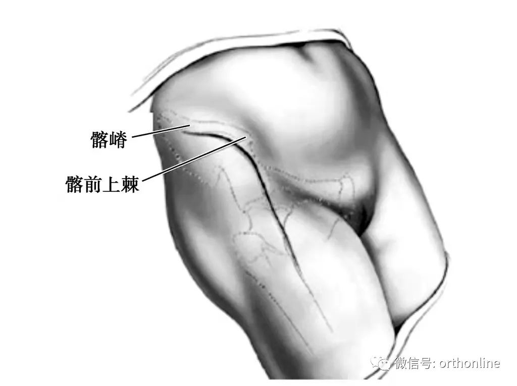 图1 髋关节前侧入路皮肤切口