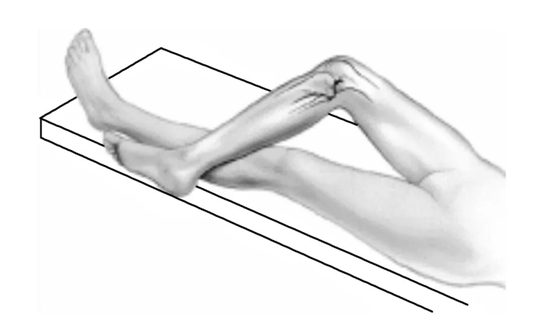 患者取仰卧位,患肢大腿根部绑气囊止血带,小腿置于健侧小腿上,患髋外展外旋(图8)。