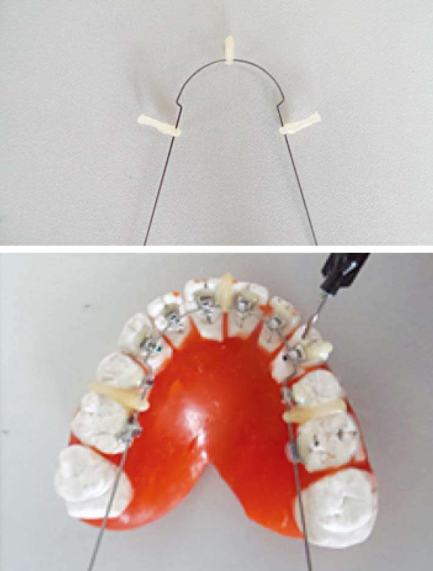 - 向前水平延伸至前牙区,位于前牙临床冠中心,舌侧托槽边缘离开牙龈至少1.5mm。
